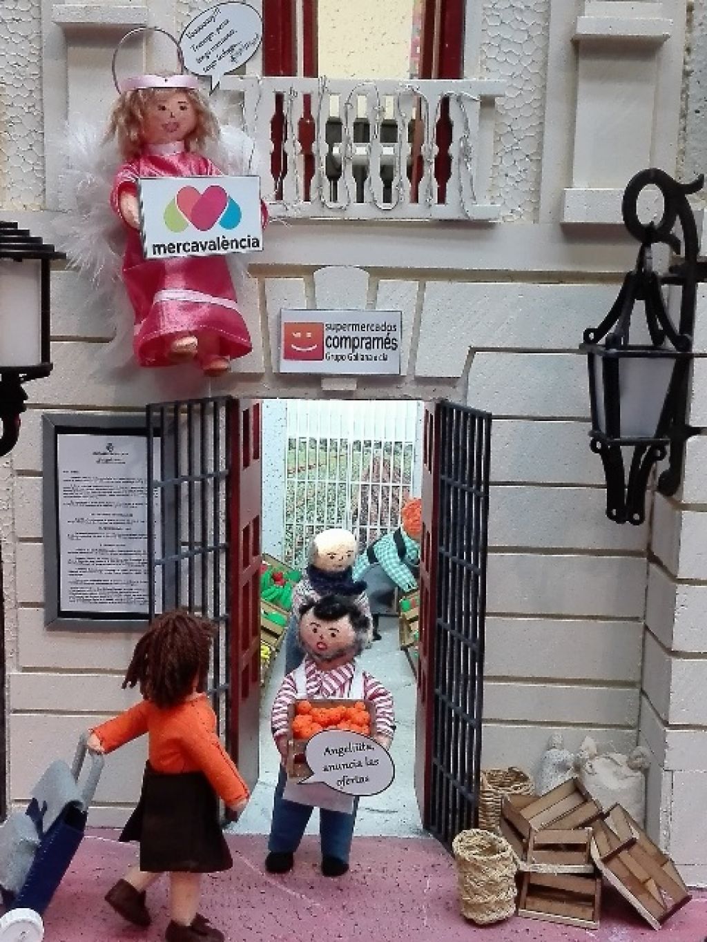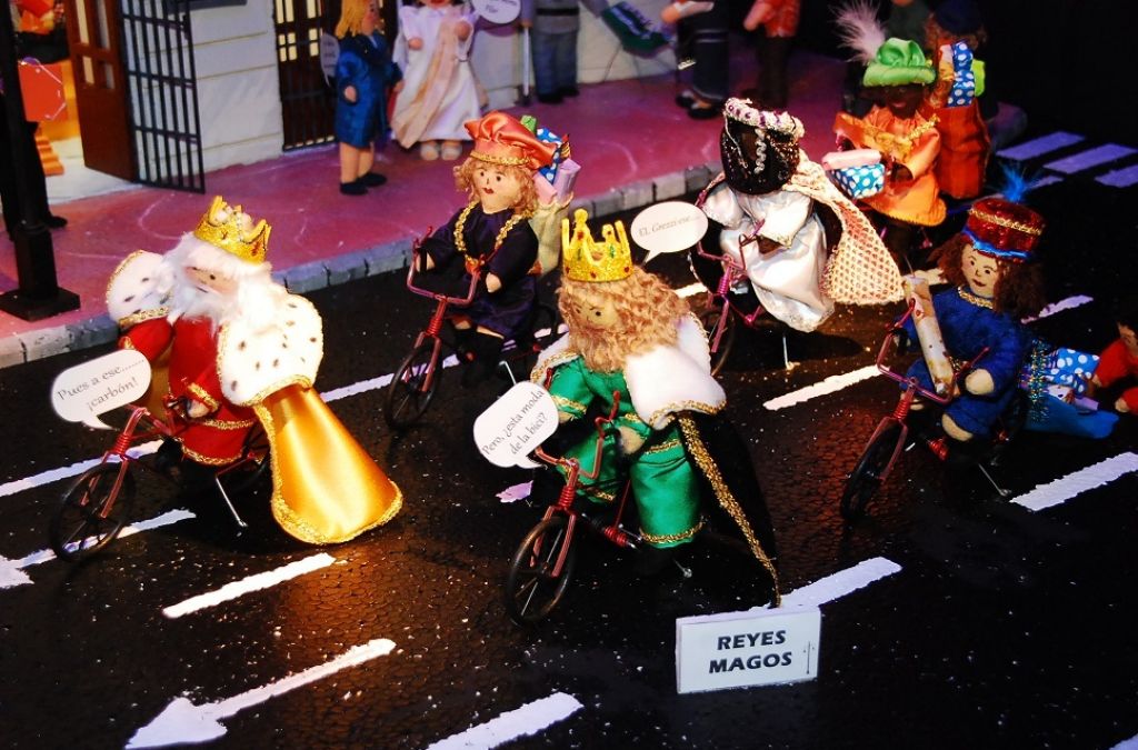 No faltan las alusiones a la retirada del belén tradicional de la Plaza del Ayuntamiento, la llegada de SSMM los Reyes Magos de Oriente en bicicleta (cosas de Grezzi), la “huida” de hombres fuertes de Fuset, la criticada iluminación de la fachada principal de la casa consistorial o la propia Sagrada Familia de okupa en el “Balcón de la Vanidades” haciéndose un selfie como cualquier turista que se precie.