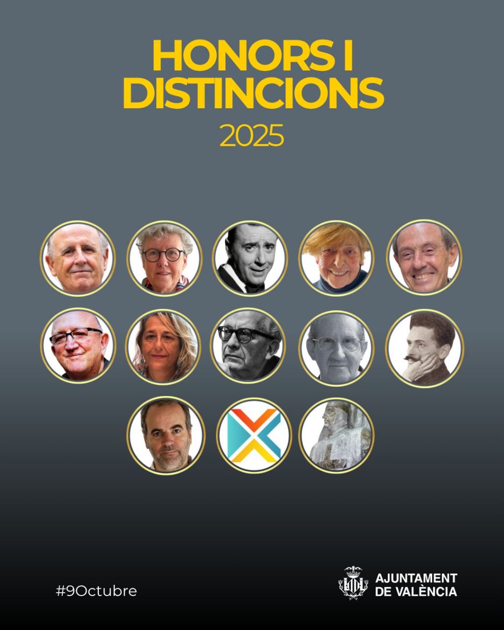 El Ayuntamiento Pleno ha aprobado este jueves, en la sesión ordinaria del mes de octubre, la concesión de los Honores y Distinciones de la Ciudad de València 2025, en el marco de la conmemoración del 9 d’Octubre, Dia de la Comunitat Valenciana. La alcaldesa de València, María José Catalá, presidirá el acto de entrega de los reconocimientos, que tendrá lugar el próximo lunes, 6 de octubre, en el Hemiciclo Municipal en sesión solemne.